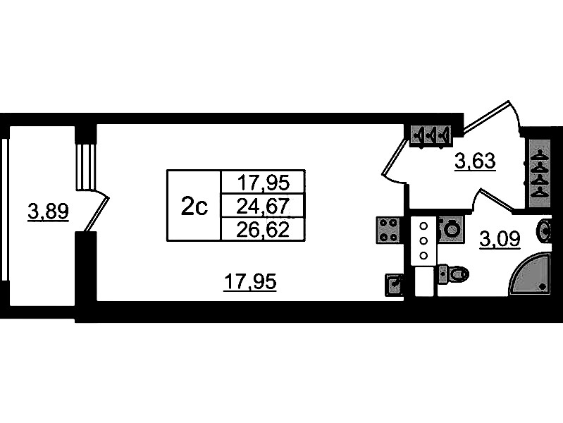 Квартира-студия на 2-ом этаже 24,67 кв.м