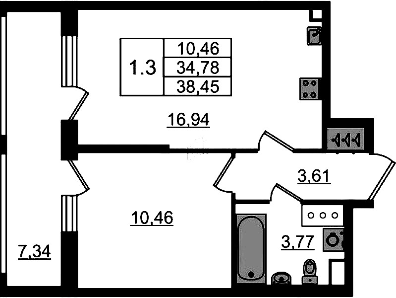 - Площадь34,78 м2