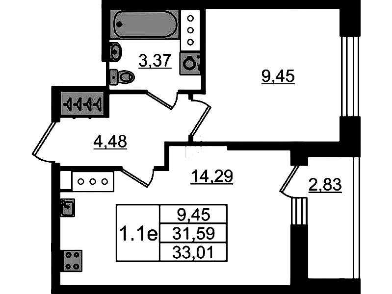 - Площадь31,59 м2