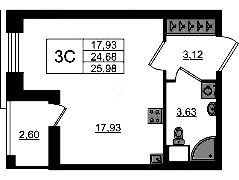 • Площадь24,68 м2