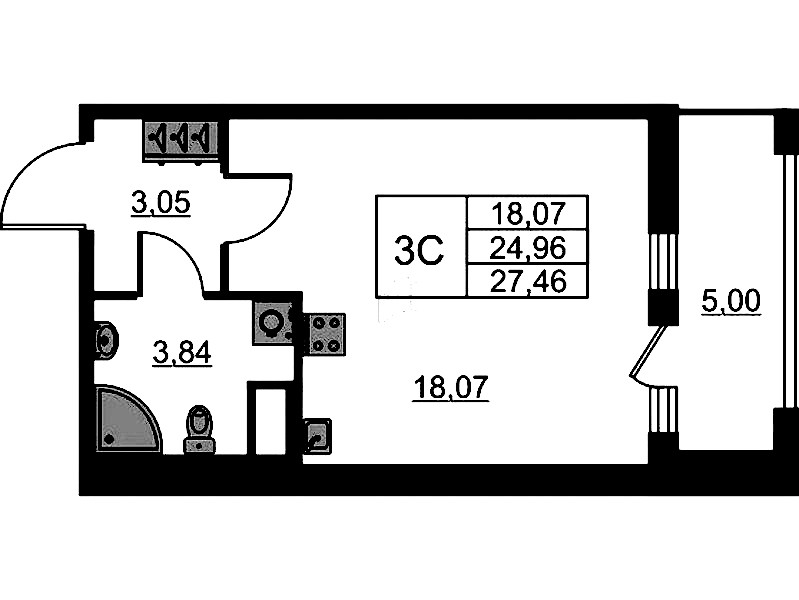• Площадь24,96 м2