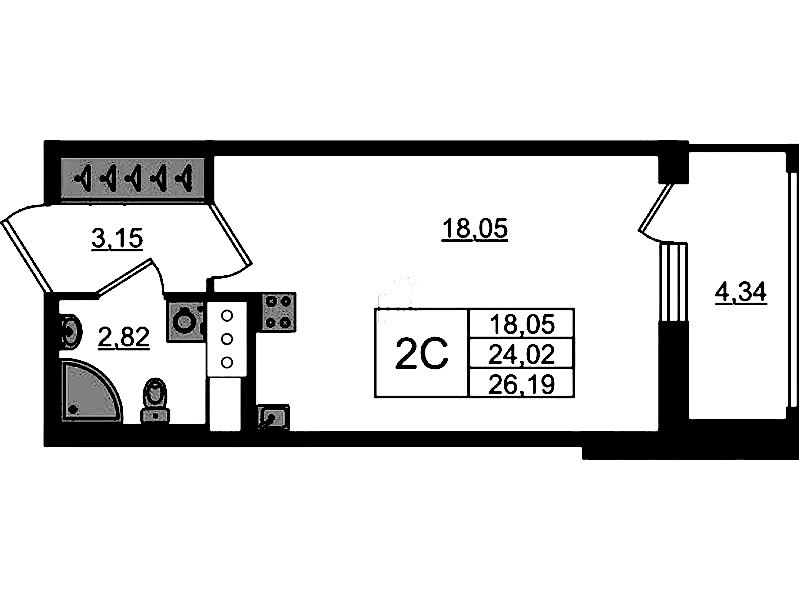 - Площадь24,02 м2