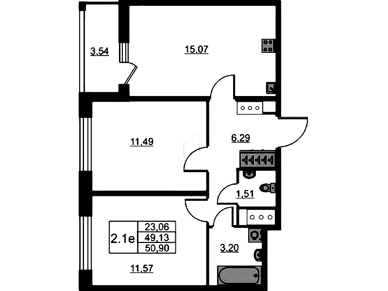 Двухкомнатная квартира на 20-ом этаже 49,13 кв.м