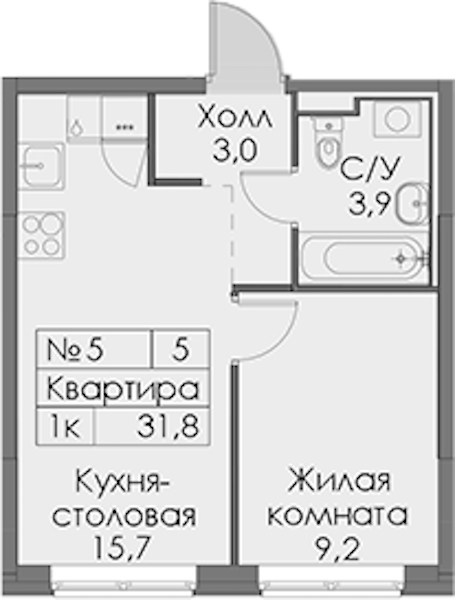 - Площадь31,8 м2