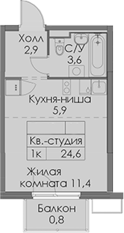 - Площадь24,6 м2