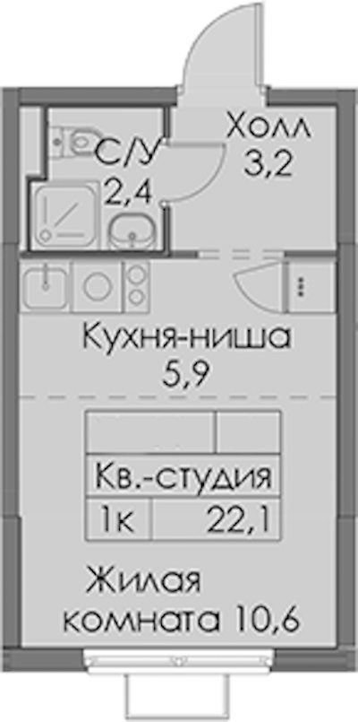 - Площадь22,1 м2