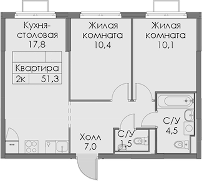 - Площадь51,3 м2