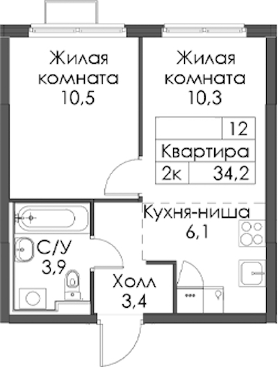 • Площадь34,2 м2