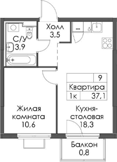 • Площадь37,1 м2