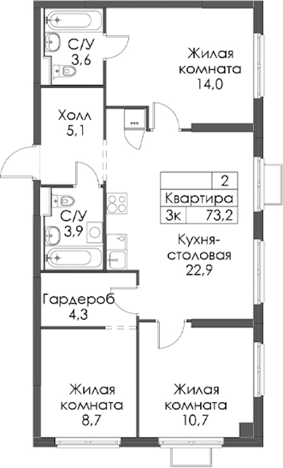 - Площадь73,2 м2