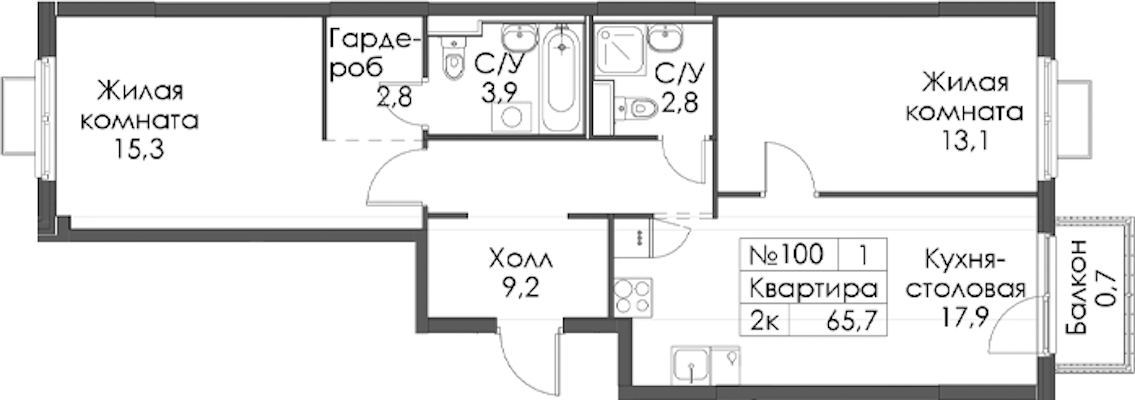 Двухкомнатная квартира на 3-ем этаже 65,7 кв.м