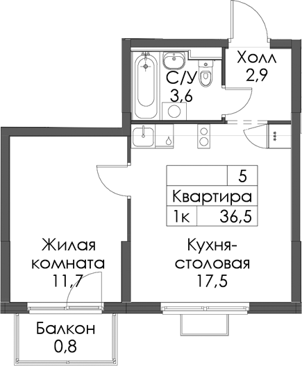 - Площадь36,5 м2