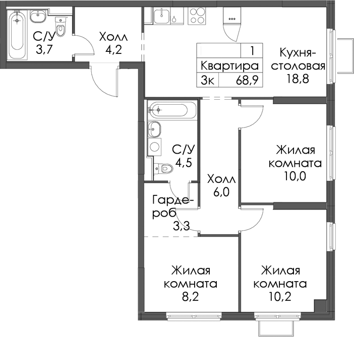 • Площадь68,9 м2