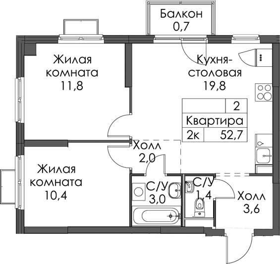 • Площадь52,7 м2