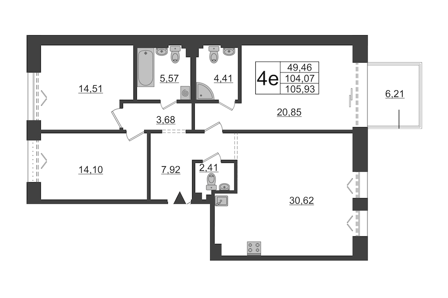 - Площадь104,07 м2