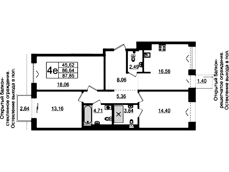- Площадь86,64 м2