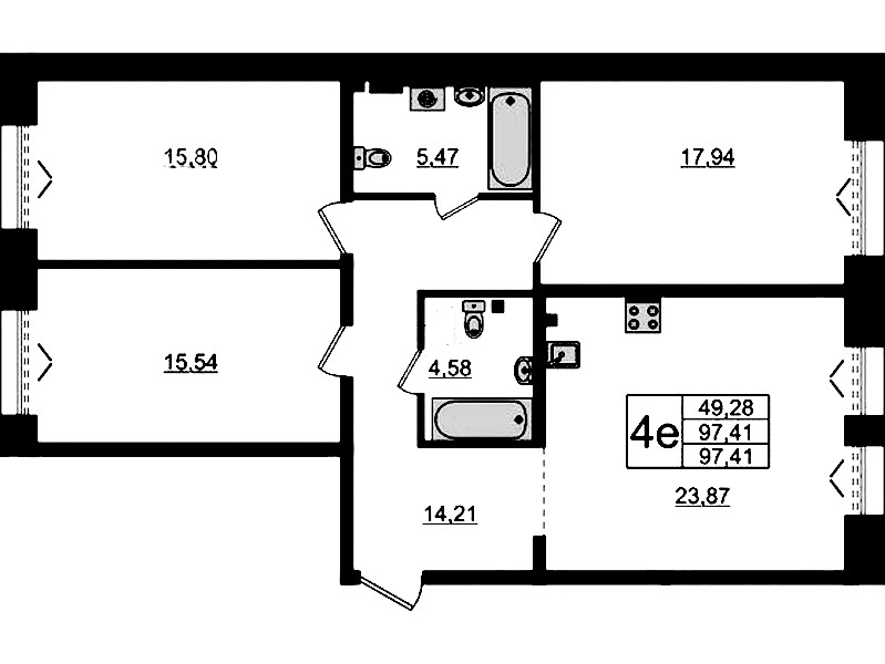 - Площадь97,41 м2