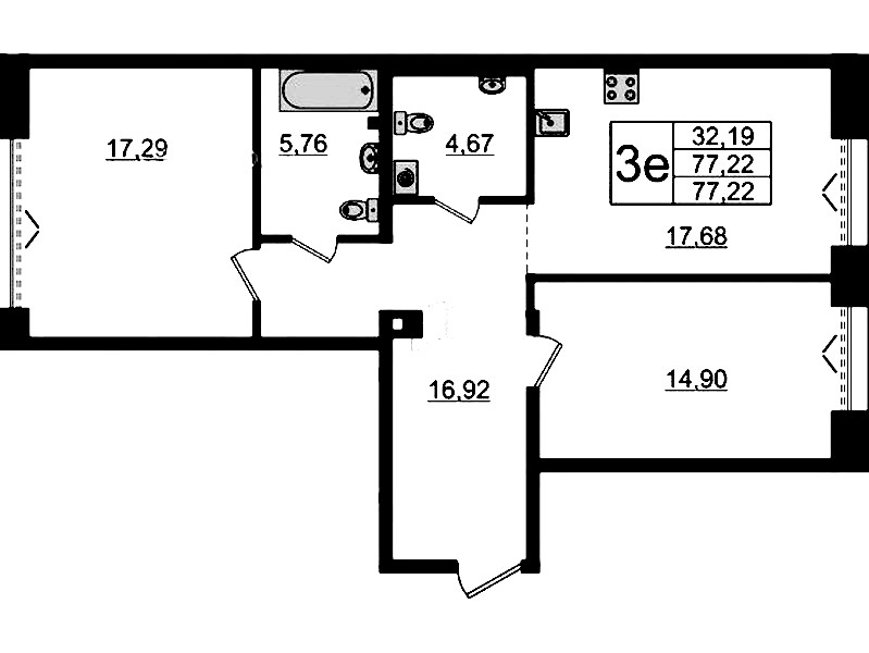 - Площадь77,22 м2