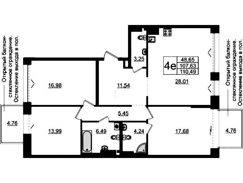 Трёхкомнатная квартира на 7-ом этаже 107,63 кв.м