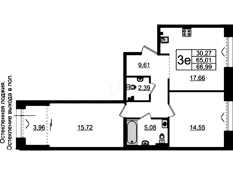 Двухкомнатная квартира на 3-ем этаже 65,01 кв.м