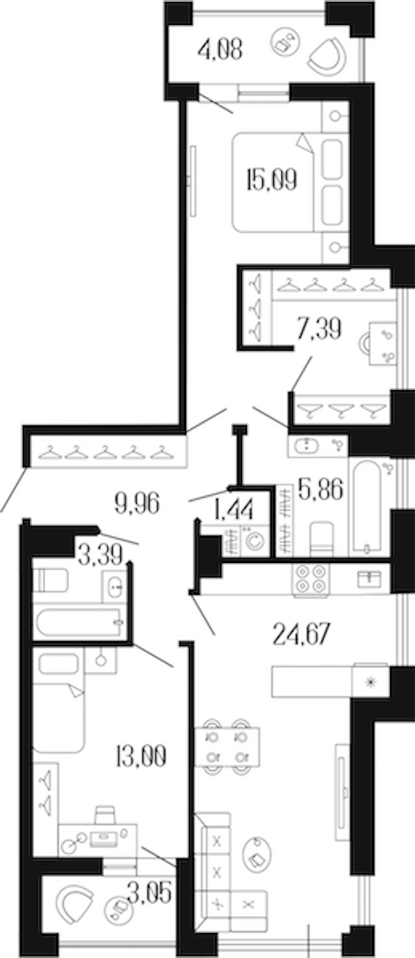 - Площадь кухни24,67 м2