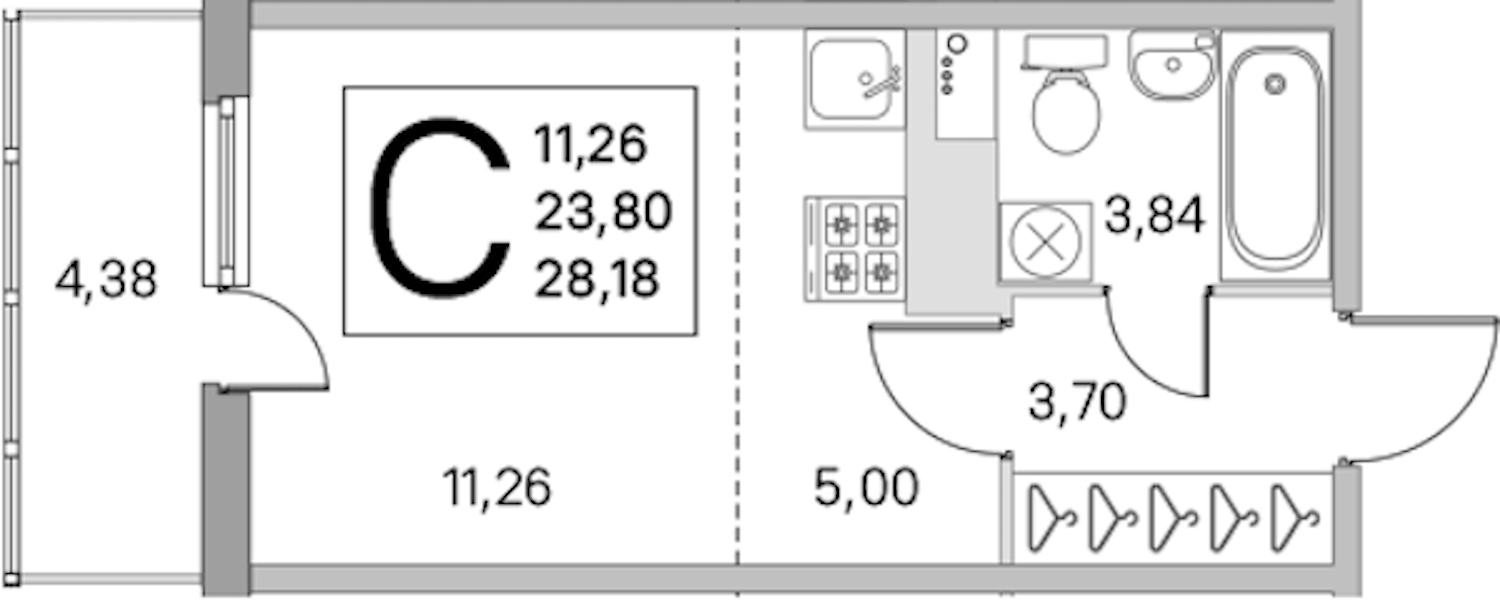 - Площадь23,8 м2