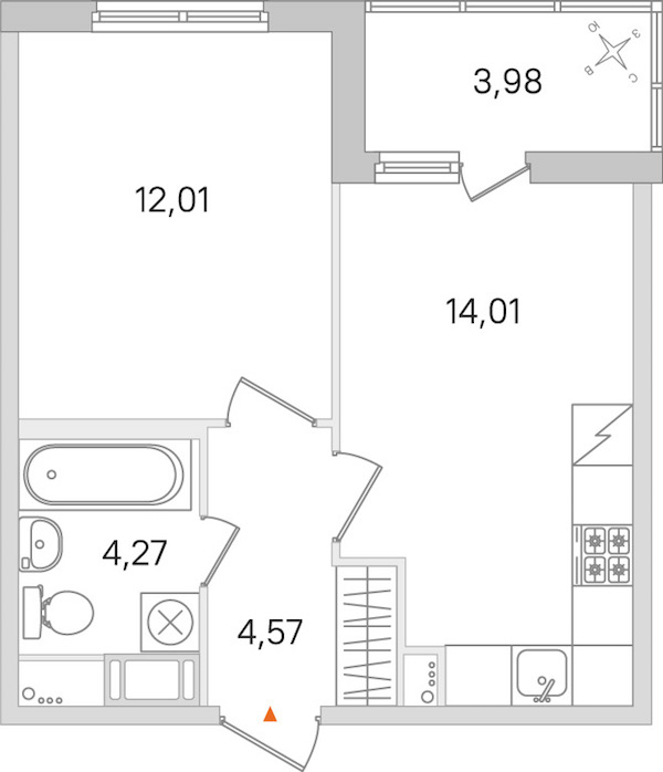 - Площадь кухни14,01 м2