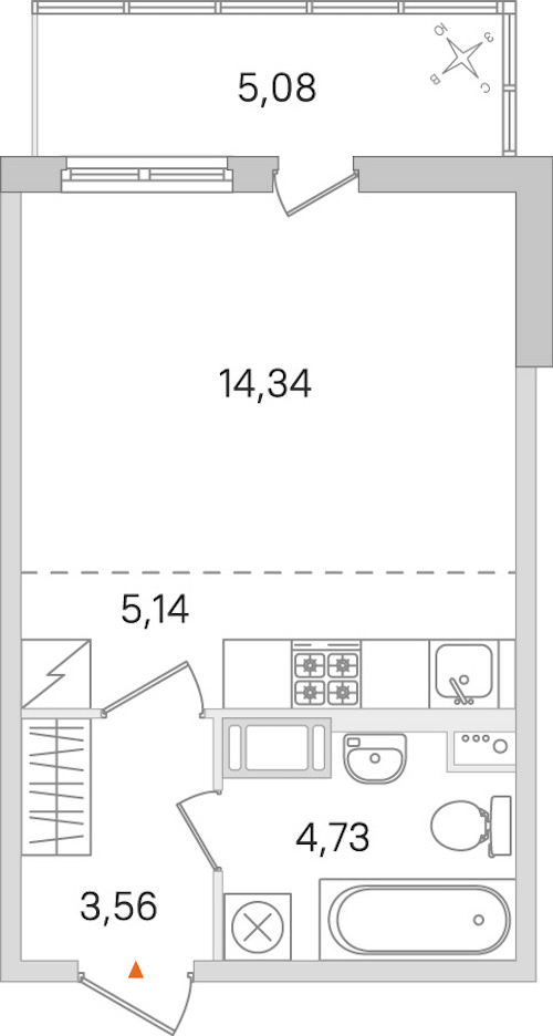 Квартира-студия на 7-ом этаже 27,77 кв.м
