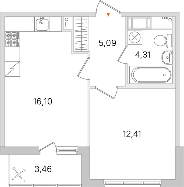 Однокомнатная квартира на 3-ем этаже 37,91 кв.м