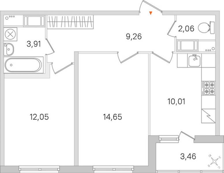 Двухкомнатная квартира на 4-ом этаже 51,94 кв.м
