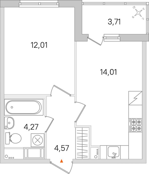 - Площадь кухни14,01 м2
