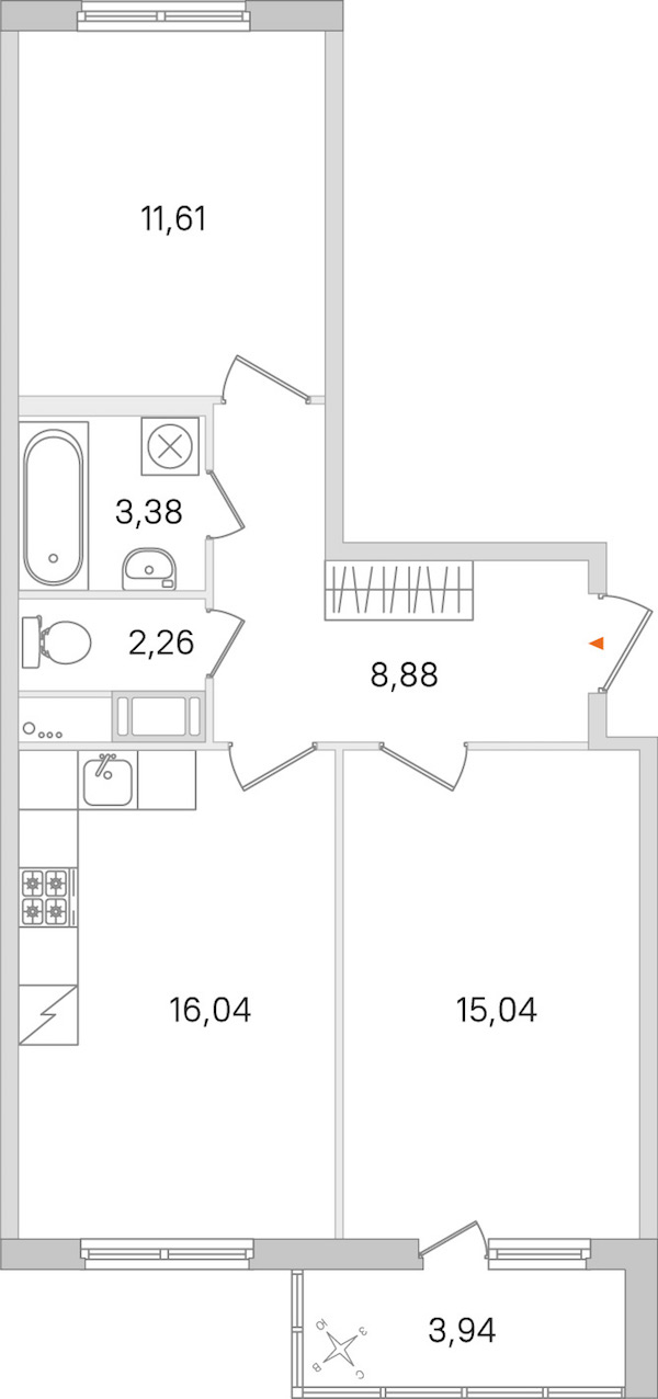 - Площадь кухни16,04 м2