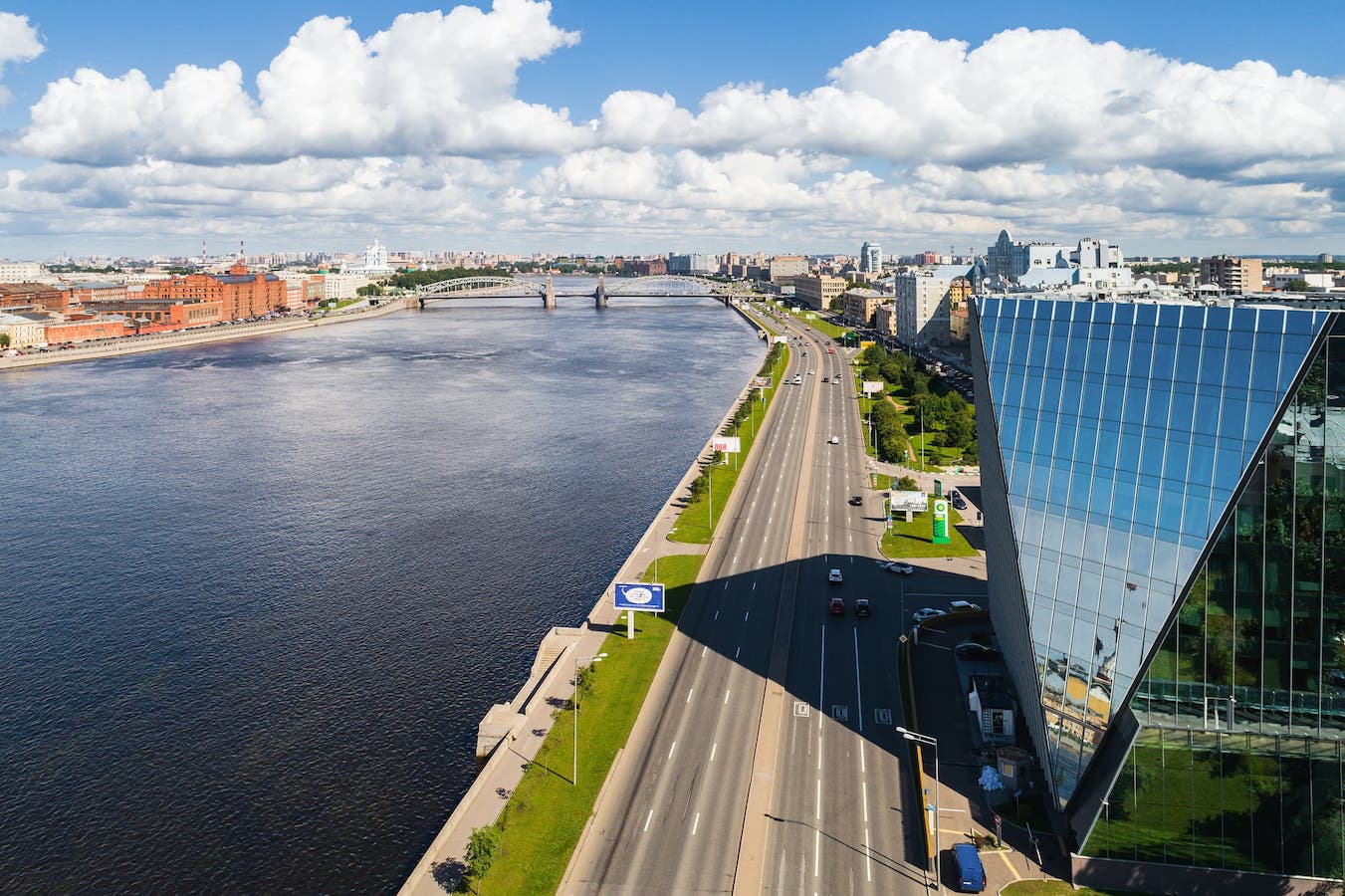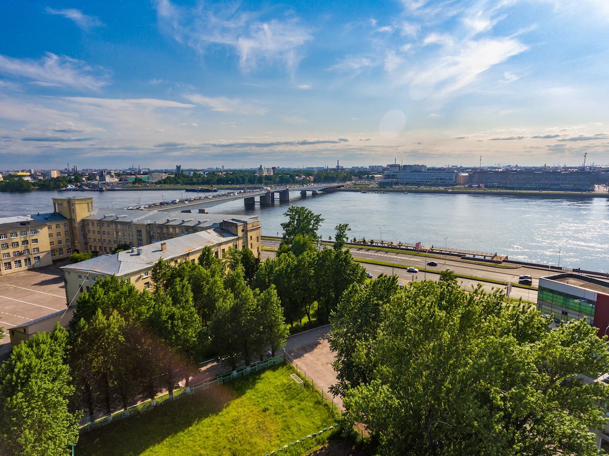 Выйдя из дома, за 2 минуты можно пешком пройти до набережной Невы, за 8 минут до Малоохтинского парка. На автомобиле можно добраться за 8 минут до площади Александра невского, а за 10 минут до Площади Восстания.