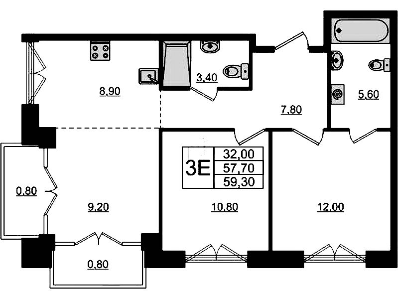 - Площадь58,8 м2