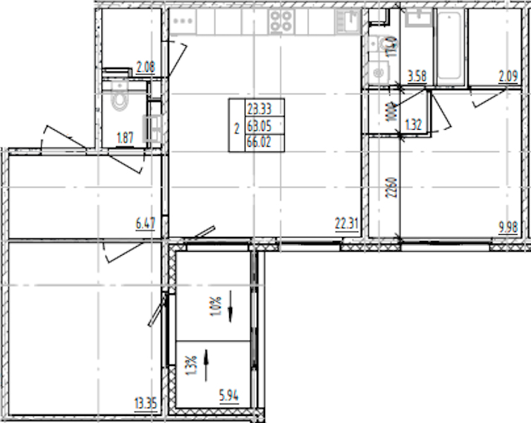 - Площадь66,02 м2