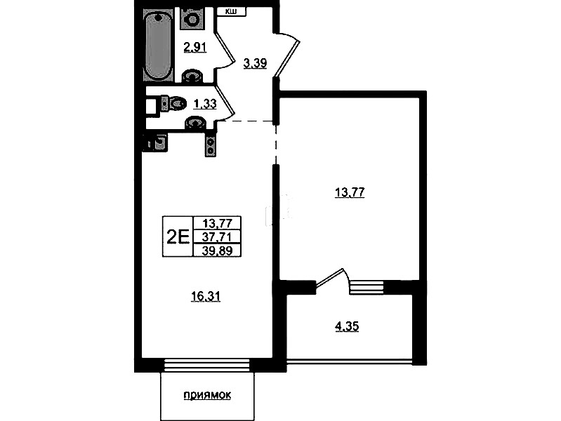 Однокомнатная квартира на 1-ом этаже 39,89 кв.м