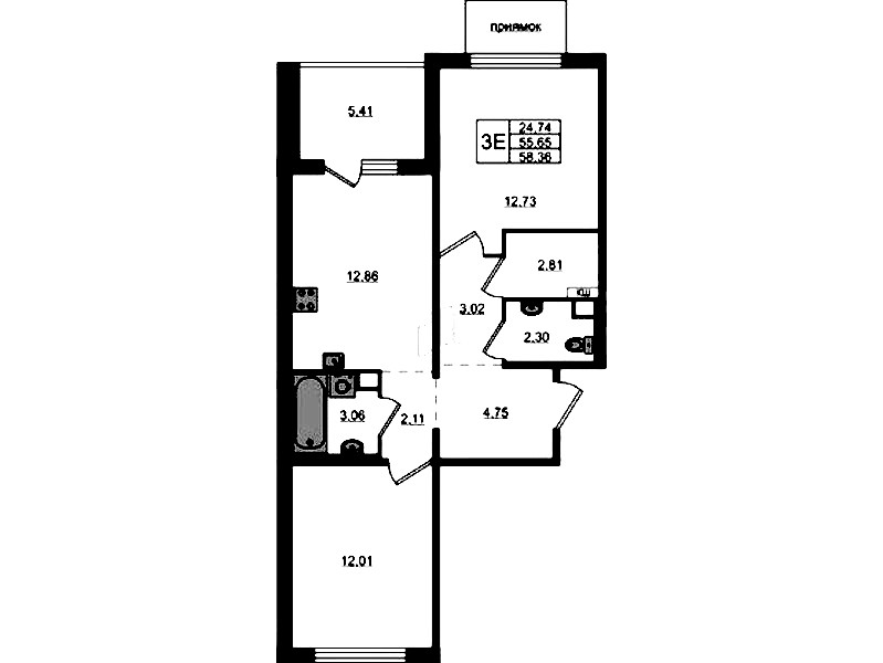 - Площадь58,36 м2