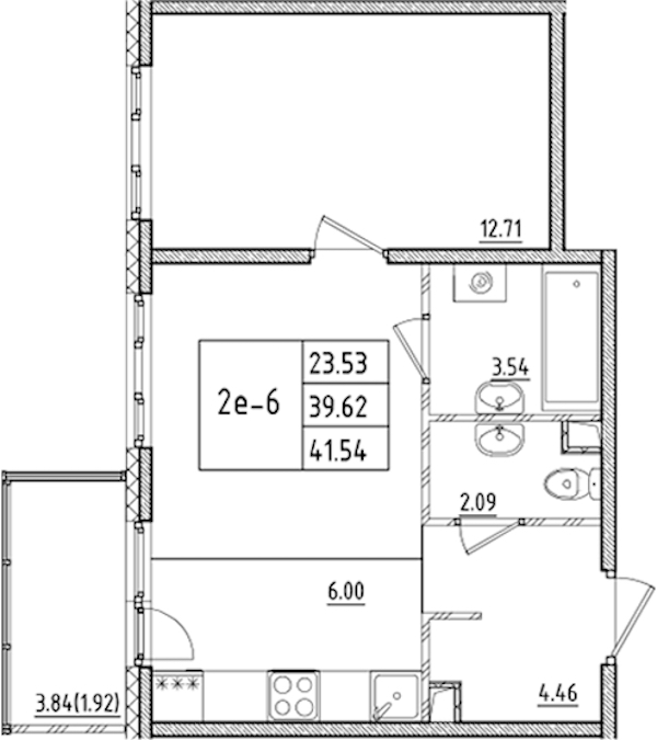 - Площадь41,54 м2