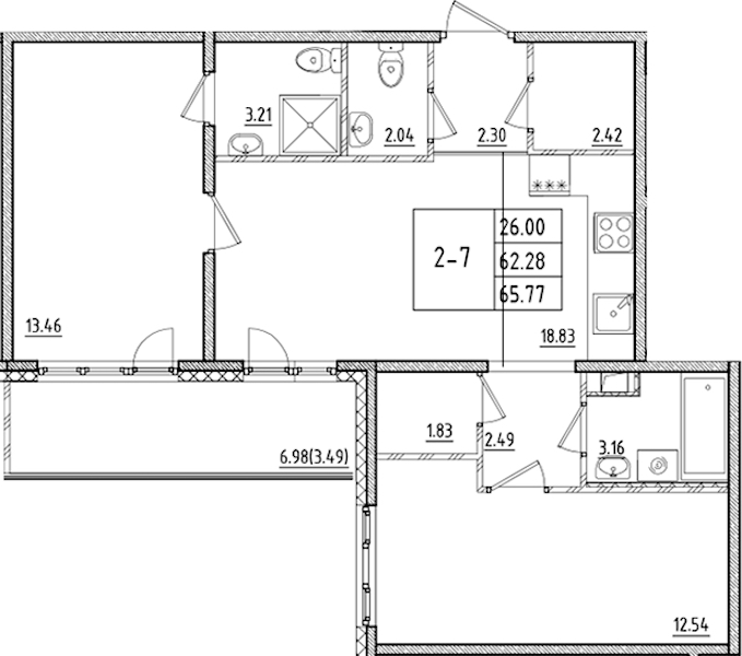 - Площадь65,77 м2