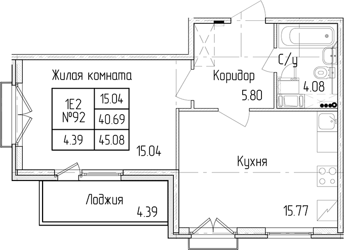 - Площадь кухни15,77 м2