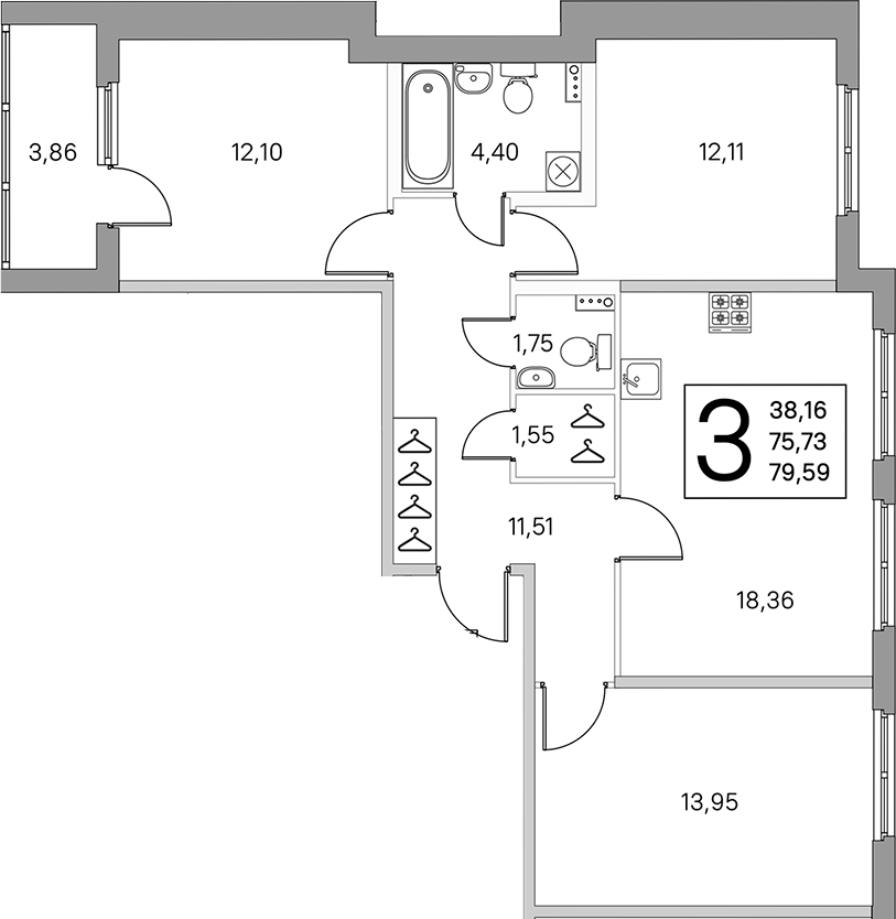 - Площадь кухни18,36 м2