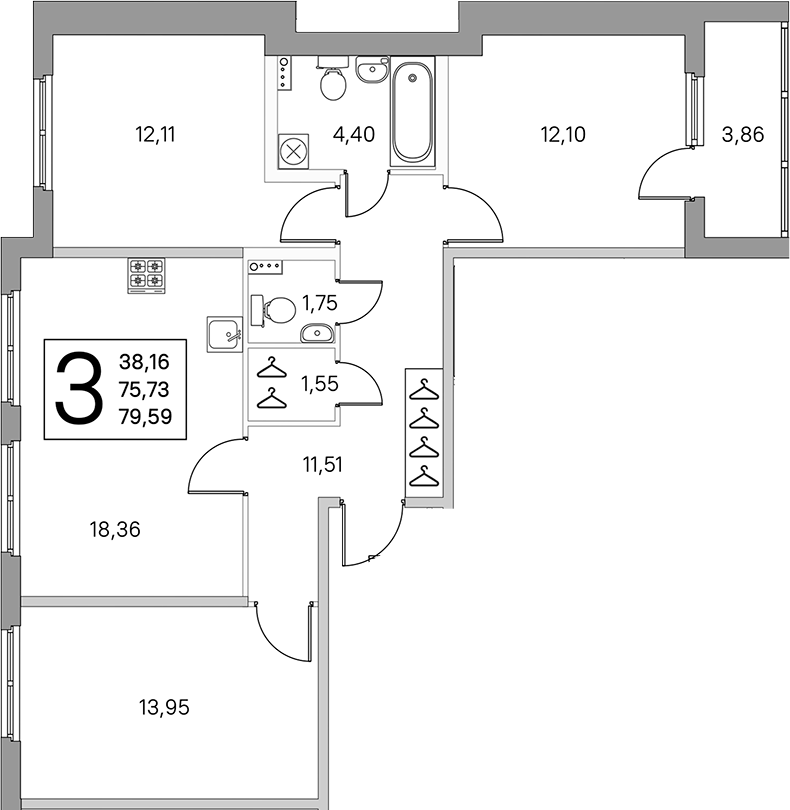 - Площадь кухни18,36 м2