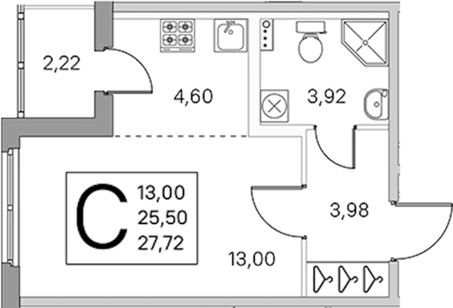 • Площадь25,5 м2