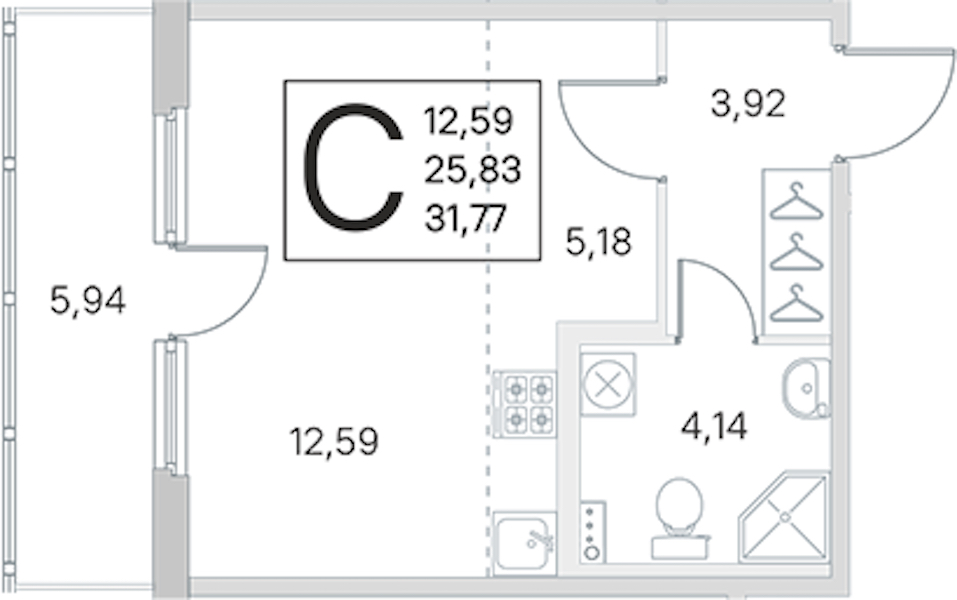 - Площадь25,83 м2