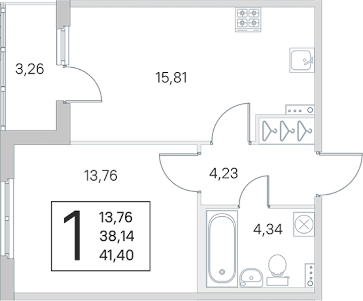 - Площадь38,14 м2