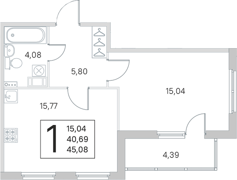 - Площадь кухни15,77 м2