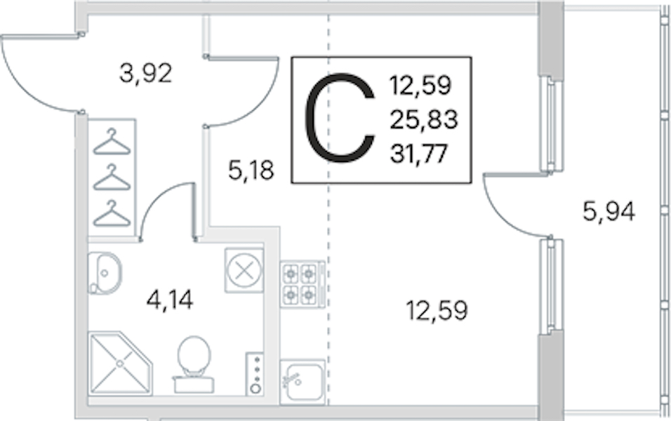- Площадь25,83 м2