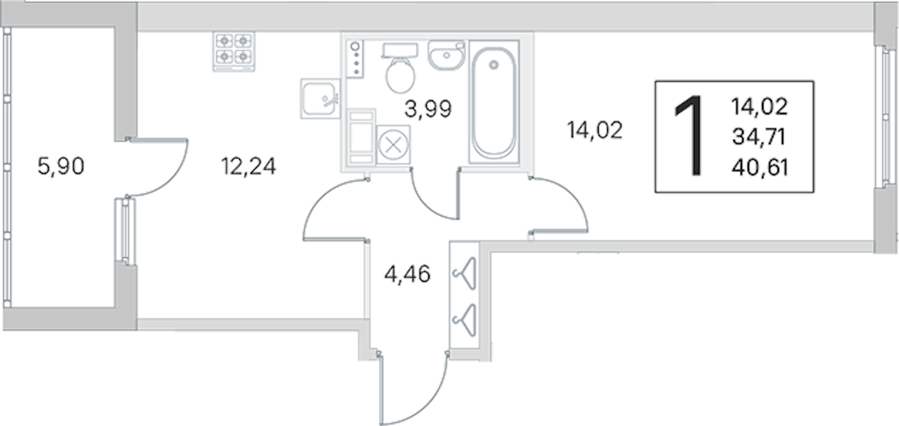 - Площадь кухни12,24 м2