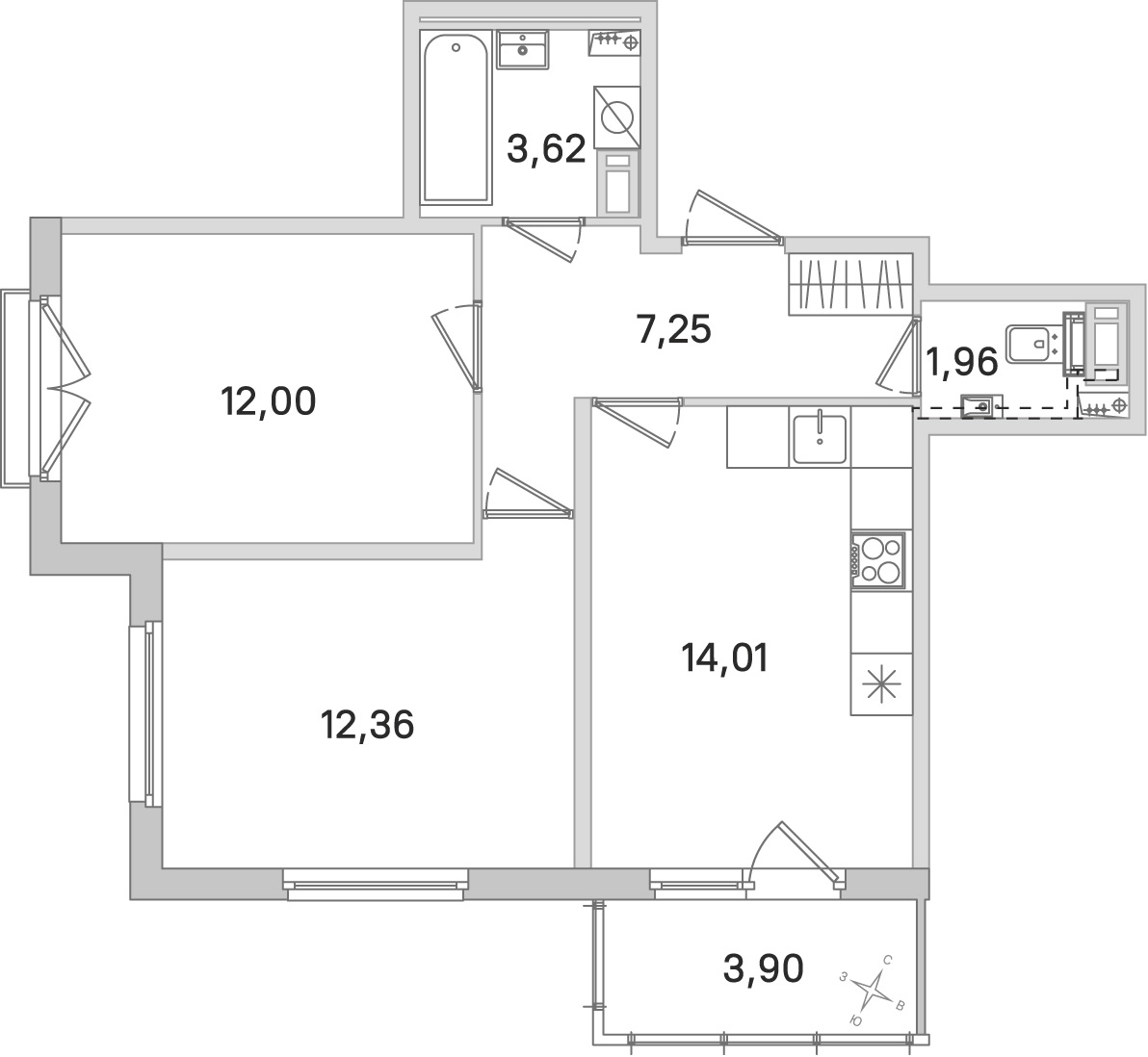 • Площадь кухни14,01 м2