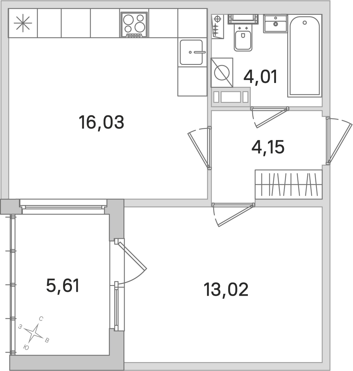 - Площадь кухни16,03 м2